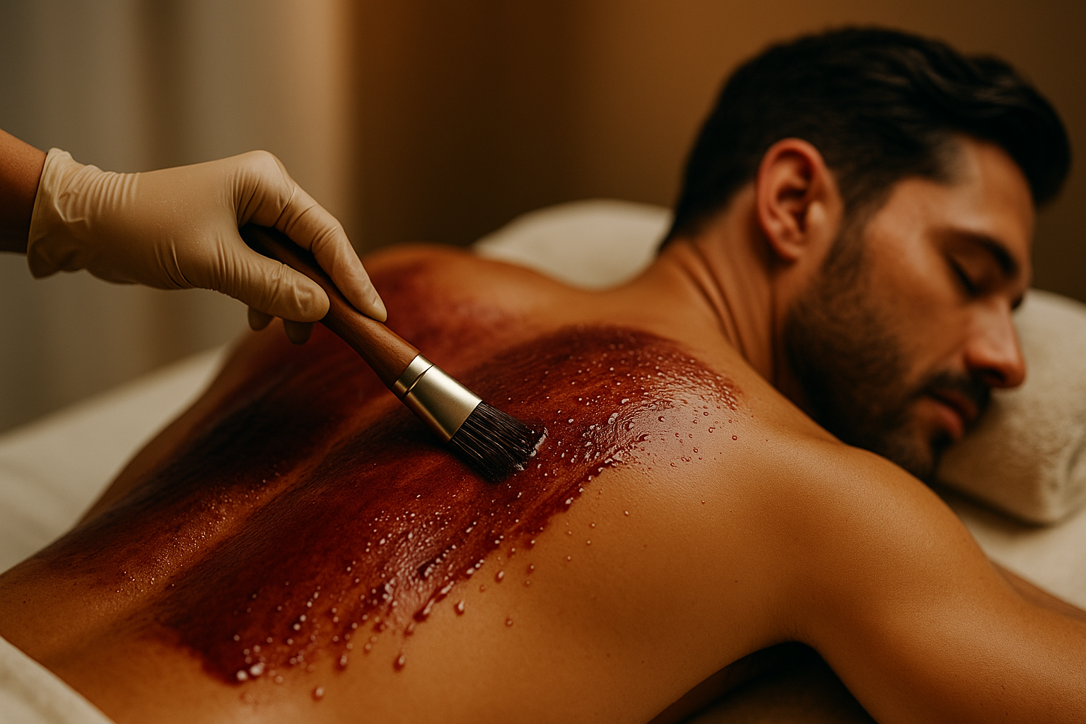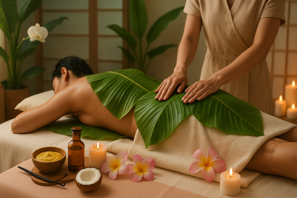 Un ritual tropical y nutritivo que envuelve tu piel en calor suave y aromas cálidos. Aplicamos un elixir de plátano con mantecas vegetales y vainilla ligera; la envoltura de hoja de banano conserva la humedad y potencia la sensación de abrazo templado. Mientras el cuerpo se relaja, trabajamos maniobras calmantes en cuello y cráneo para soltar tensión. Finalizamos con aceite tibio satinado y un cierre de integración para que salgas ligero/a, luminoso/a y deliciosamente perfumado/a. Ideal cuando buscas nutrición profunda, piel sedosa y un descanso dulce que te acompaña. (Si tienes sensibilidad a plátano/coco, consúltanos antes.)